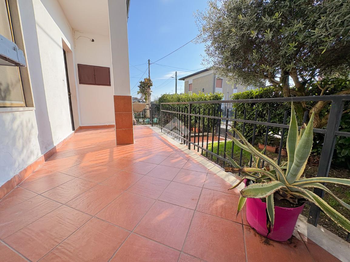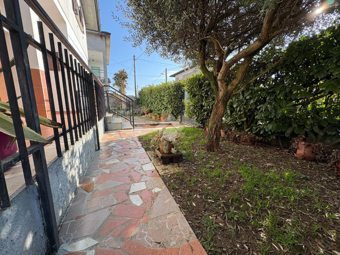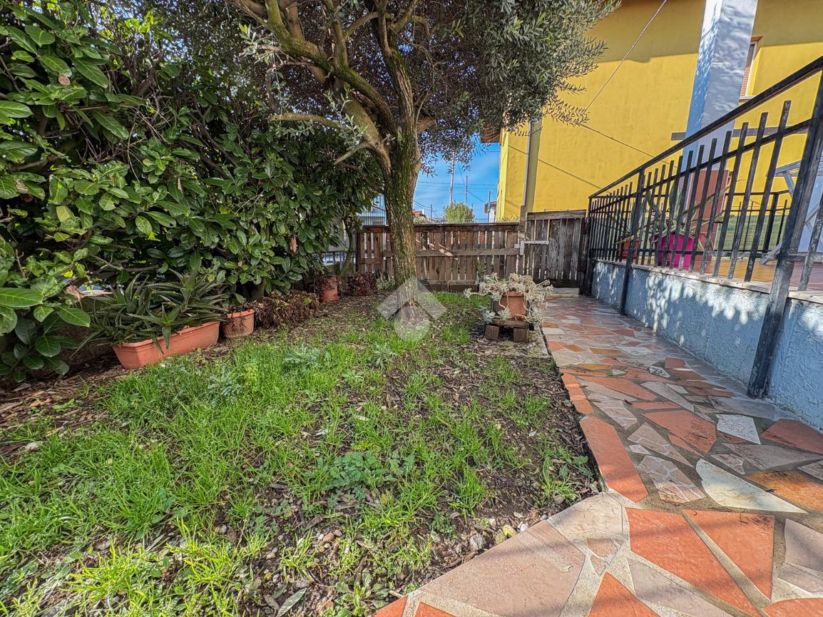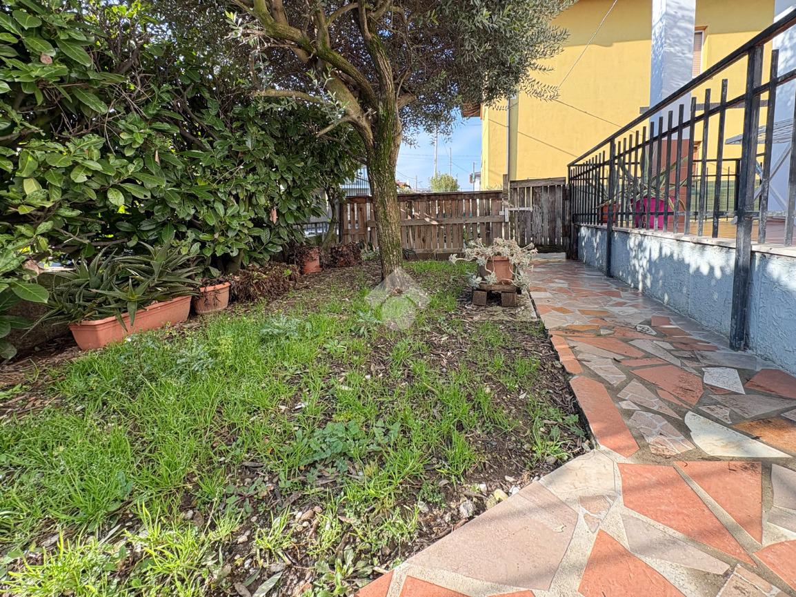 Appartamento-soggiorno/cucina-soggiorno-due camere da letto-bagno-ripostiglio-cantina-lavanderia-box-giardino.